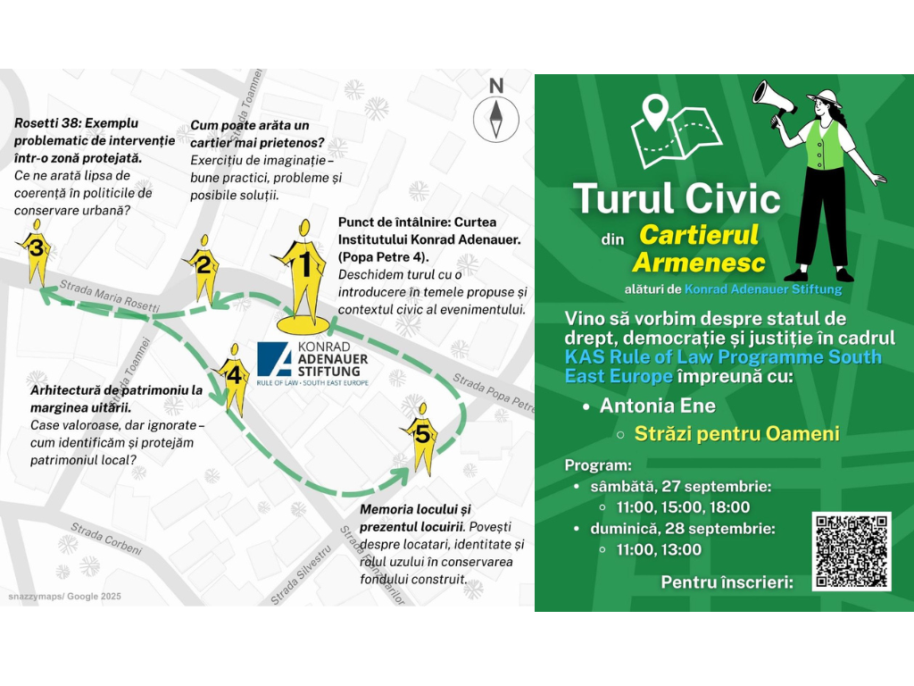 Organizat de: Asociația LiderJust, One World Romania, KAS Rule of Law Programme South East Europe | Sala: Mansarda KAS